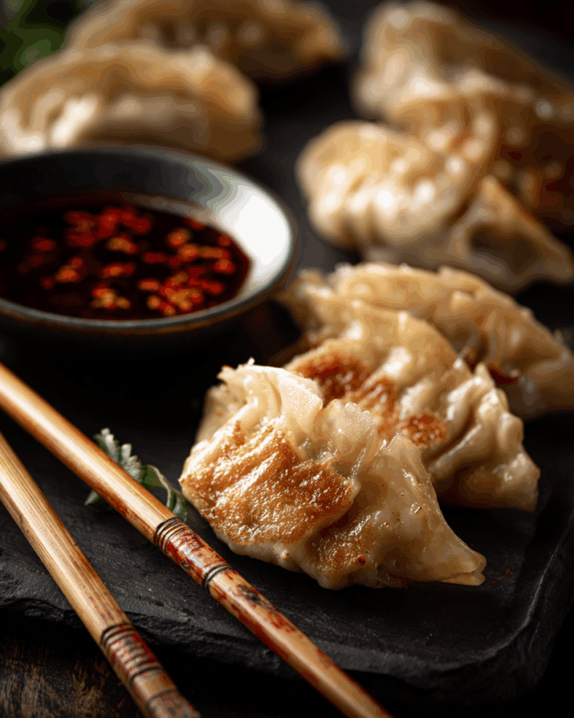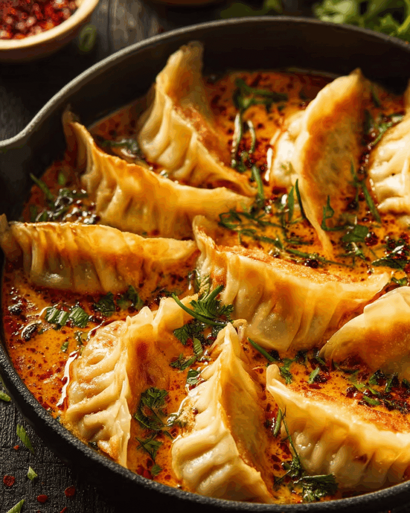 Top the finished dish with toasted sesame seeds and crispy shallots. This adds extra crunch and makes the Baked Potstickers with Thai Curry Sauce look as dramatic and trendy as every viral dumpling bake recipe you see online.