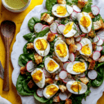 Keep it minimal—just eggs, greens, and a basic vinaigrette. Sometimes less really is more.