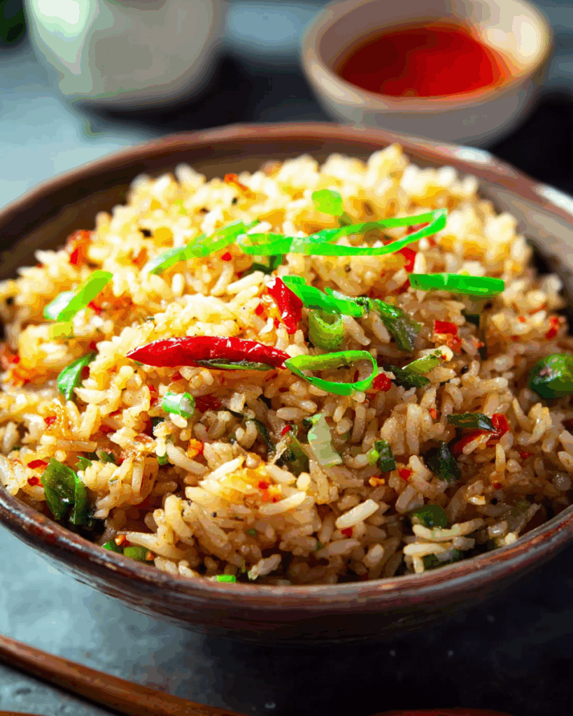 Chilli Garlic Fried Rice is one of those timeless comfort dishes that can turn even the most ordinary meal into a feast. With its fiery aroma, deep garlic undertones, and colorful medley of vegetables, it’s a dish that not only satisfies hunger but also excites the senses. I can still recall the first time I cooked chilli garlic fried rice in my tiny kitchen. The sizzle of garlic in hot oil, the vibrant red of the chilli paste, and the smoky stir-fry fragrance reminded me instantly of bustling food streets and family dinners filled with laughter.