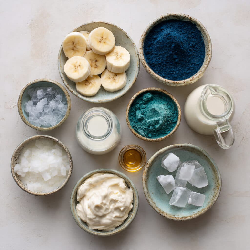 Blue Spirulina Powder: This natural algae powder provides the stunning sky blue color while blending smoothly into creamy drinks.
