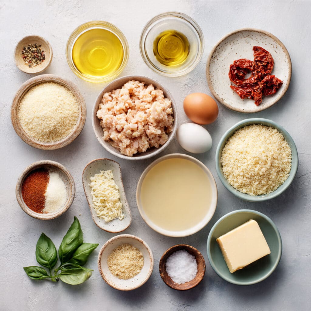 Keywords: creamy chicken meatballs, parmesan cream sauce meatballs, sun-dried tomato chicken meatballs, skillet chicken meatballs, easy chicken meatball dinner