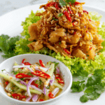 Crispy Catfish and Green Mango Salad perfectly showcases the balance that Thai cuisine is known for: spicy, sour, salty, and sweet—each note hitting your palate in just the right way. It’s light but satisfying, flavorful but refreshing. It’s the kind of dish you crave again and again, whether you had it on a Bangkok street corner or your own dining table.