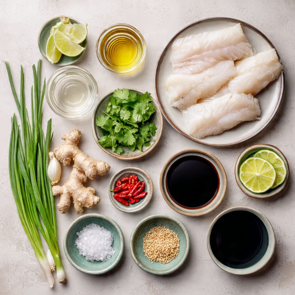 Tender white fish fillets are gently steamed in a fragrant garlic, ginger, and soy sauce mixture, then finished with fresh chili, cilantro, and green onions for a light yet deeply flavorful main dish.