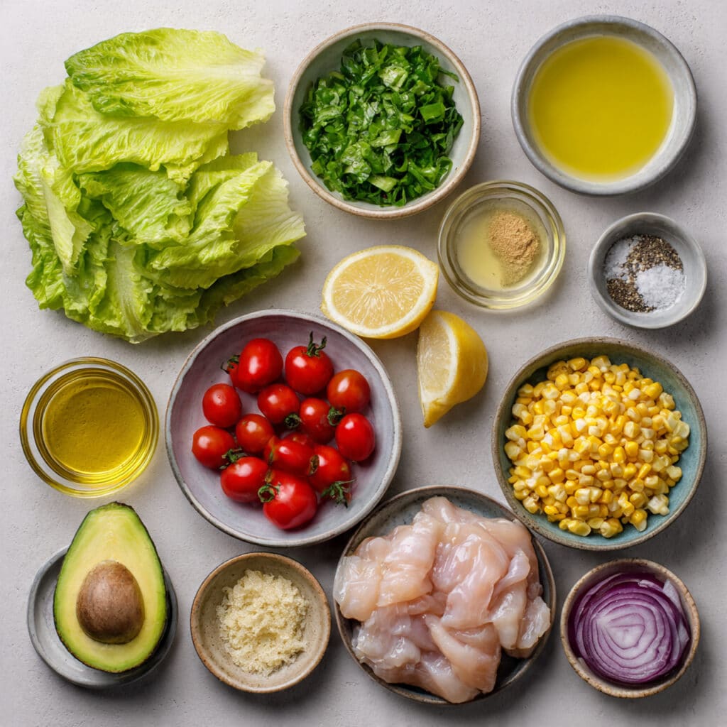 - Assemble the Dish: While the grill heats fully, place the chopped romaine, corn, tomatoes, avocado, and red onion in a large serving bowl. Keep the ingredients arranged in sections if you want that fresh, eye-catching look.