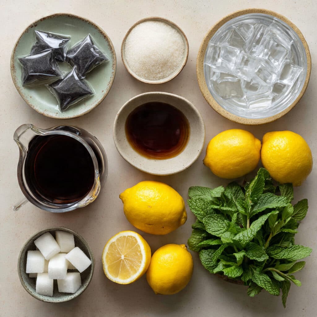 A refreshing homemade iced lemon tea made with brewed black tea, fresh lemon juice, and a touch of sweetness. Perfect for hot days and easy to prepare in minutes.