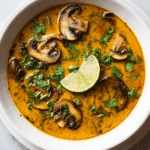 A creamy and comforting Mushroom Curry Soup made with a mix of mushrooms, curry paste, coconut milk, and aromatic spices. Perfect for a cozy dinner, this soup balances earthy flavors with creamy richness and a touch of lime.