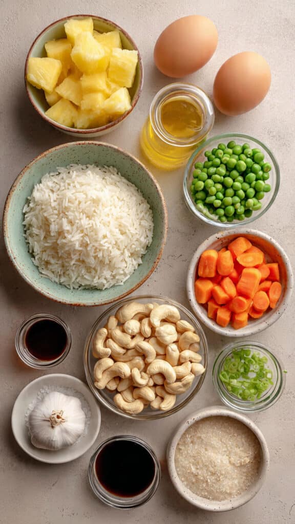 Every bite offers contrast. The rice stays light and fluffy, the pineapple bursts with sweetness, and the cashews add that satisfying crunch. Meanwhile, the savory soy sauce ties everything together, creating a harmony that keeps you coming back for more.