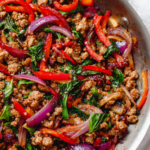 A fiery and fragrant stir-fry, Spicy Thai Basil Chicken is a quick and flavorful dish made with ground chicken, garlic, chilies, and fresh Thai basil. Perfect for busy weeknights, it’s a crowd-pleaser served over jasmine rice.