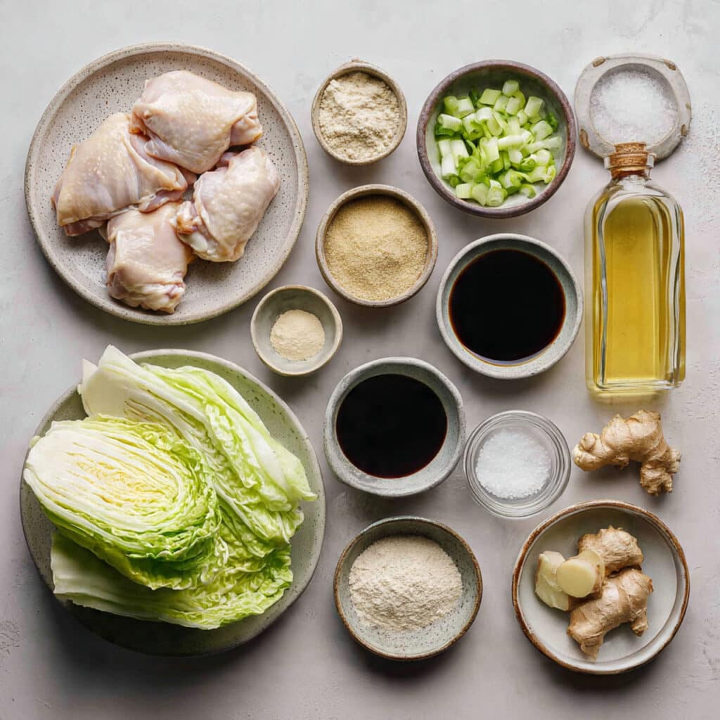 Tender steamed chicken with soft cabbage, fresh scallions, garlic, and ginger in a light savory sauce. This cozy, low-effort dish is perfect for serving over rice when you want something comforting, simple, and full of flavor.