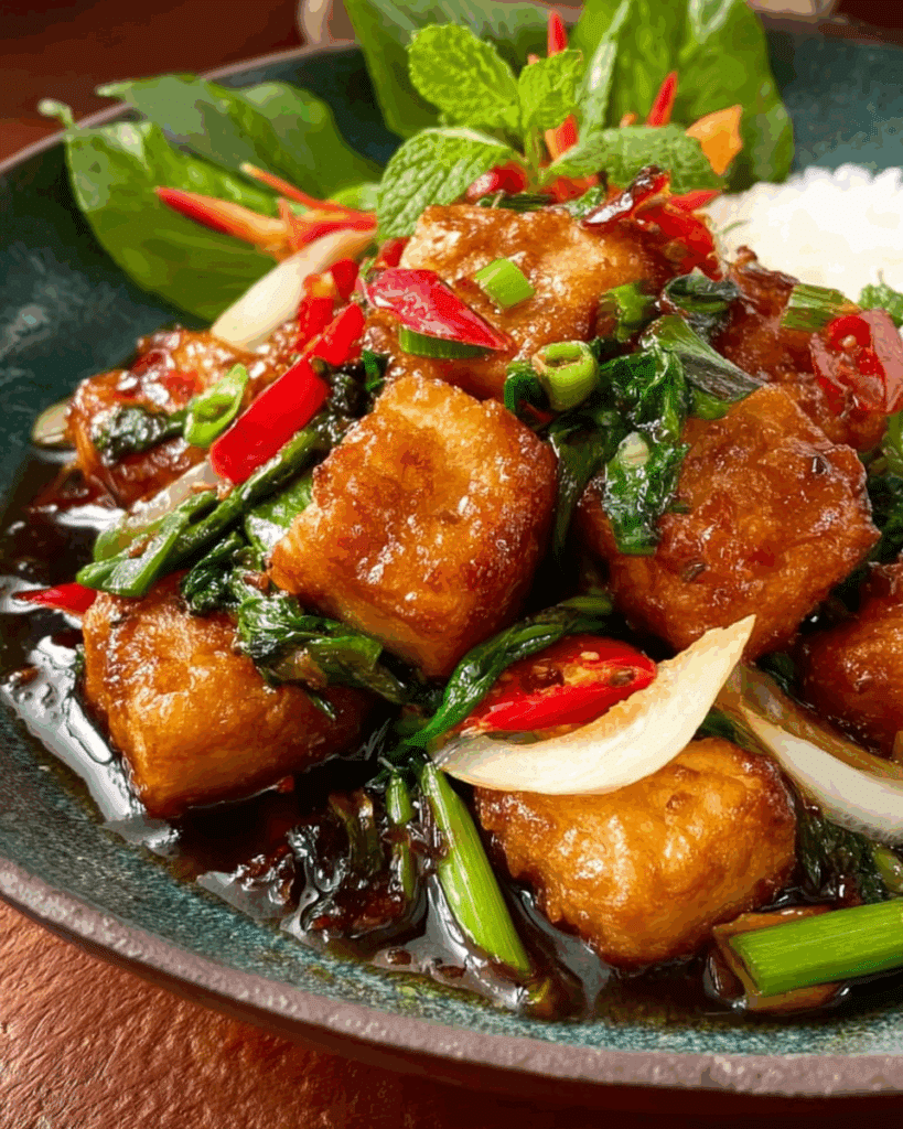 Keywords: Thai Basil Tofu Stir-Fry, vegetarian Thai recipes, basil tofu, Thai street food, quick tofu stir-fry, spicy tofu recipe, easy Thai stir-fry, holy basil tofu, Asian tofu dish, Thai basil recipe