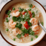 This comforting Thai Breakfast Rice Soup, also known as Khao Tom, combines a fragrant broth with tender shrimp and jasmine rice, topped with aromatic herbs and optional condiments for a hearty start to the day.