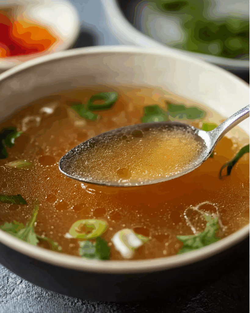 Minerals like calcium and magnesium often seep into Thai Broth during the slow simmering process. These minerals support overall health. Cilantro roots and garlic add antioxidants which help protect your cells. Even the fish sauce used to season Thai Broth contributes amino acids that are beneficial in small amounts. Thai Broth is gentle on the stomach which is why many people sip it when they are feeling tired or want something comforting.