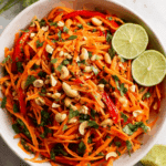 Thai Carrot Salad is a vibrant, crunchy, and flavor-packed Thai-inspired side dish made with shredded carrots, a sweet and tangy dressing, and chopped peanuts. It’s easy to make, naturally gluten-free, and perfect for meal prep or serving with Thai mains.