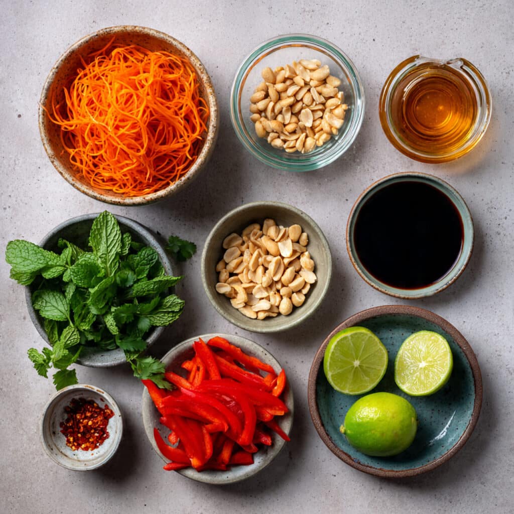 A vibrant, crunchy Thai-inspired carrot salad packed with fresh herbs, tangy lime, and a hint of spice.
