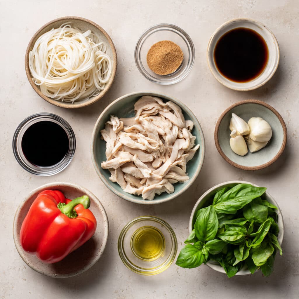 - Rice Noodles: 8 oz wide rice noodles, they soak up the sauce beautifully.
