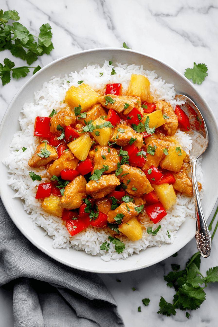 💡 Want to see a different take on this dish? Check out this Thai Chicken and Pineapple Stir-Fry from Skinnytaste or explore Simply Suwanee’s sweet and sour chicken with pineapple. For another creative pineapple chicken variation, I recommend Salt & Lavender’s Pineapple Chicken.