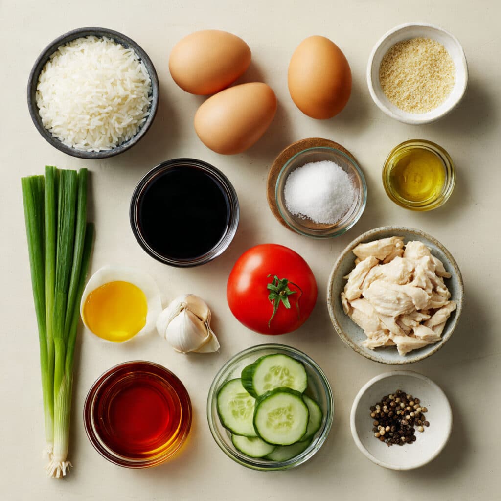 A quick and flavorful Thai fried rice made with fluffy jasmine rice, tender chicken, scrambled eggs, and fresh vegetables. This comforting dish is perfect for busy weeknights and delivers authentic savory flavor in every bite.