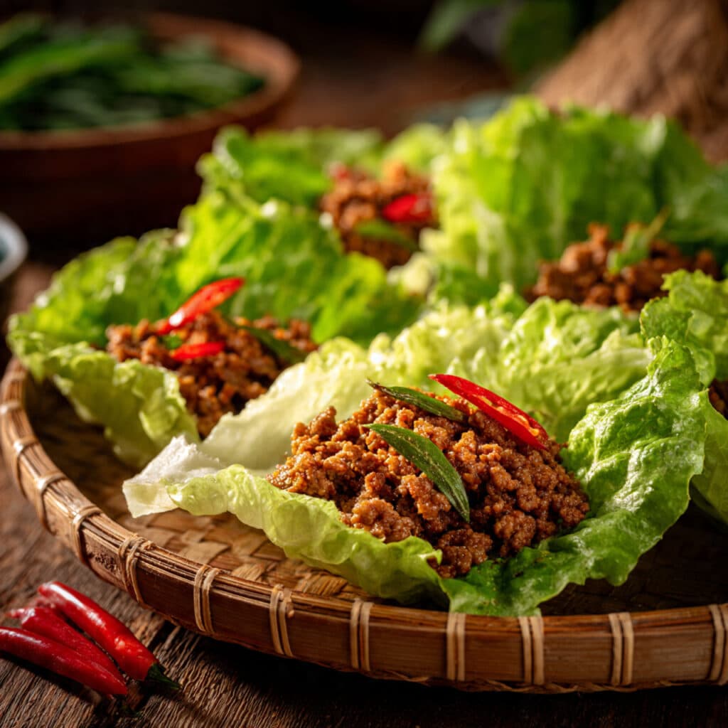 The use of lettuce as a wrapper highlights the importance of texture and freshness in Thai cuisine. Crunchy greens paired with warm seasoned meat create contrast that keeps each bite interesting. This idea appears across many Southeast Asian cultures, which is why similar dishes exist in neighboring countries with local twists.