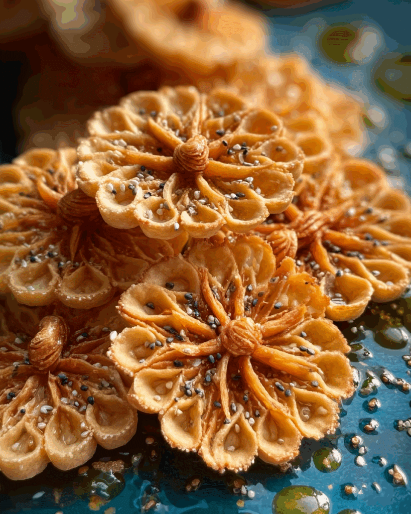 The key to crispy cookies that bloom perfectly is oil temperature. It should be hot enough for the batter to sizzle when dipped but not so hot that it burns before opening. I usually test with a small drop of batter. If it floats up and browns slowly, the temperature is right.