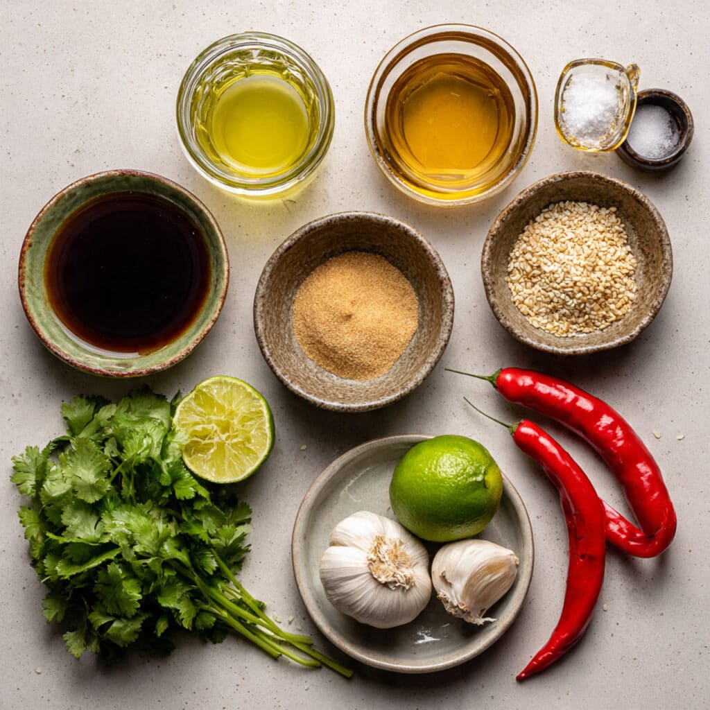 A bright, tangy, sweet, and savory Thai-inspired salad dressing made with fresh lime juice, fish sauce, brown sugar, sesame oil, garlic, red chili, and cilantro. It comes together in minutes and adds bold flavor to salads, noodles, vegetables, and grilled proteins.