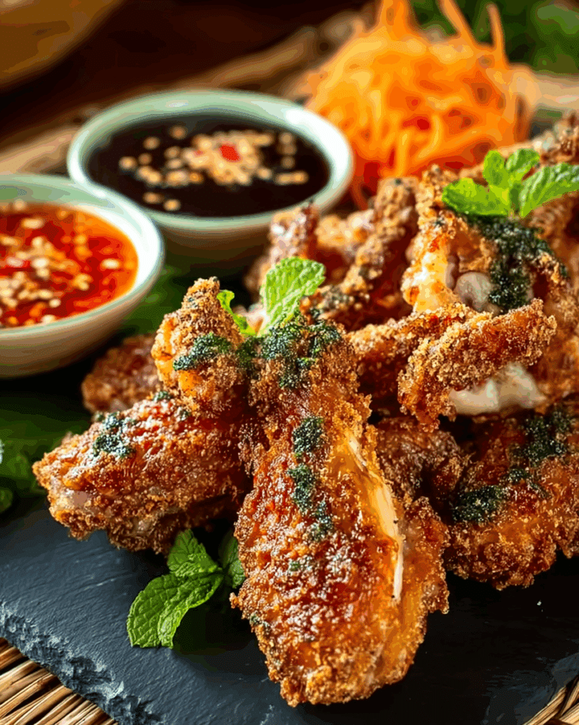 These wings pair wonderfully with several types of dipping sauces. The classic choice is Thai sweet chili sauce, which adds a perfect balance of sweetness and gentle heat. Another great option is a spicy vinegar dip made with fish sauce, sugar, garlic, and a few slices of fresh chili. If you prefer something creamy, mix mayonnaise with a bit of sriracha and lime juice for a smooth, tangy contrast.
