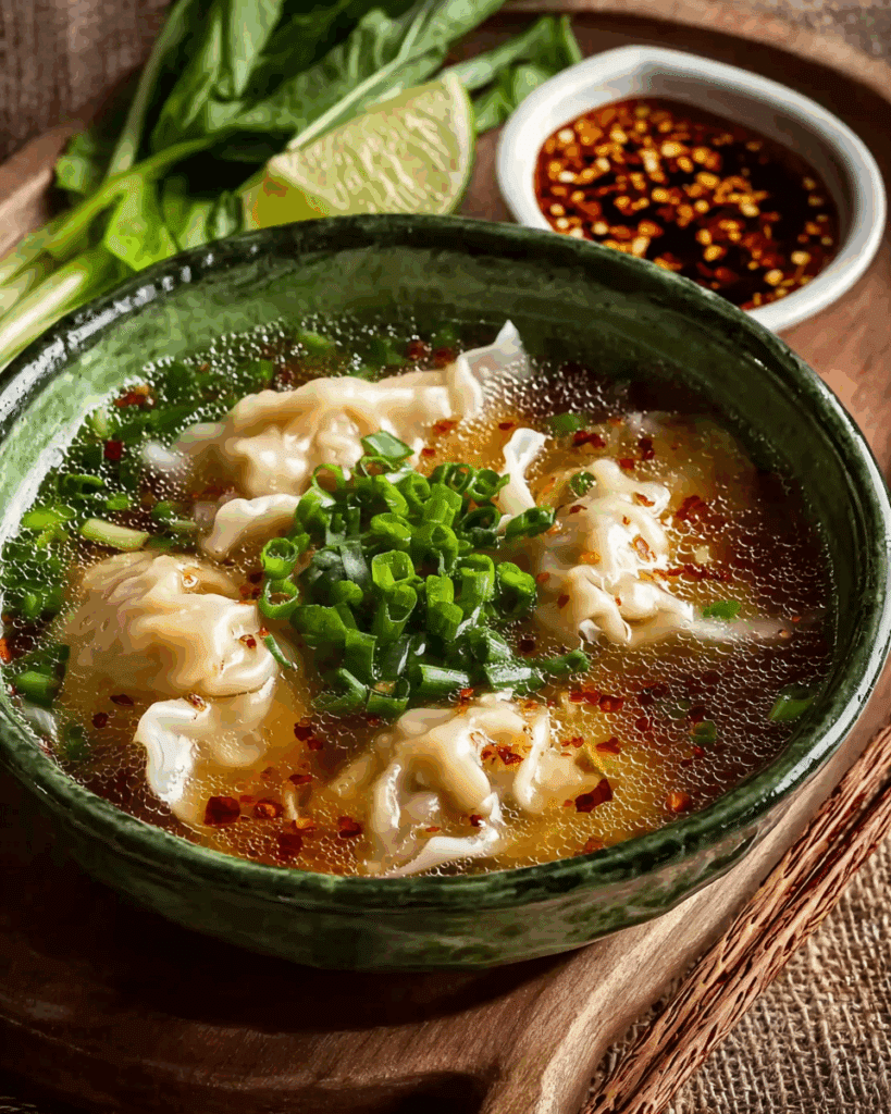 A comforting and authentic Thai Wonton Soup Recipe made with delicate wontons, fresh bok choy, and a light soy-pepper broth. Perfect for cozy meals, easy to prepare, and full of Thai-inspired flavor.