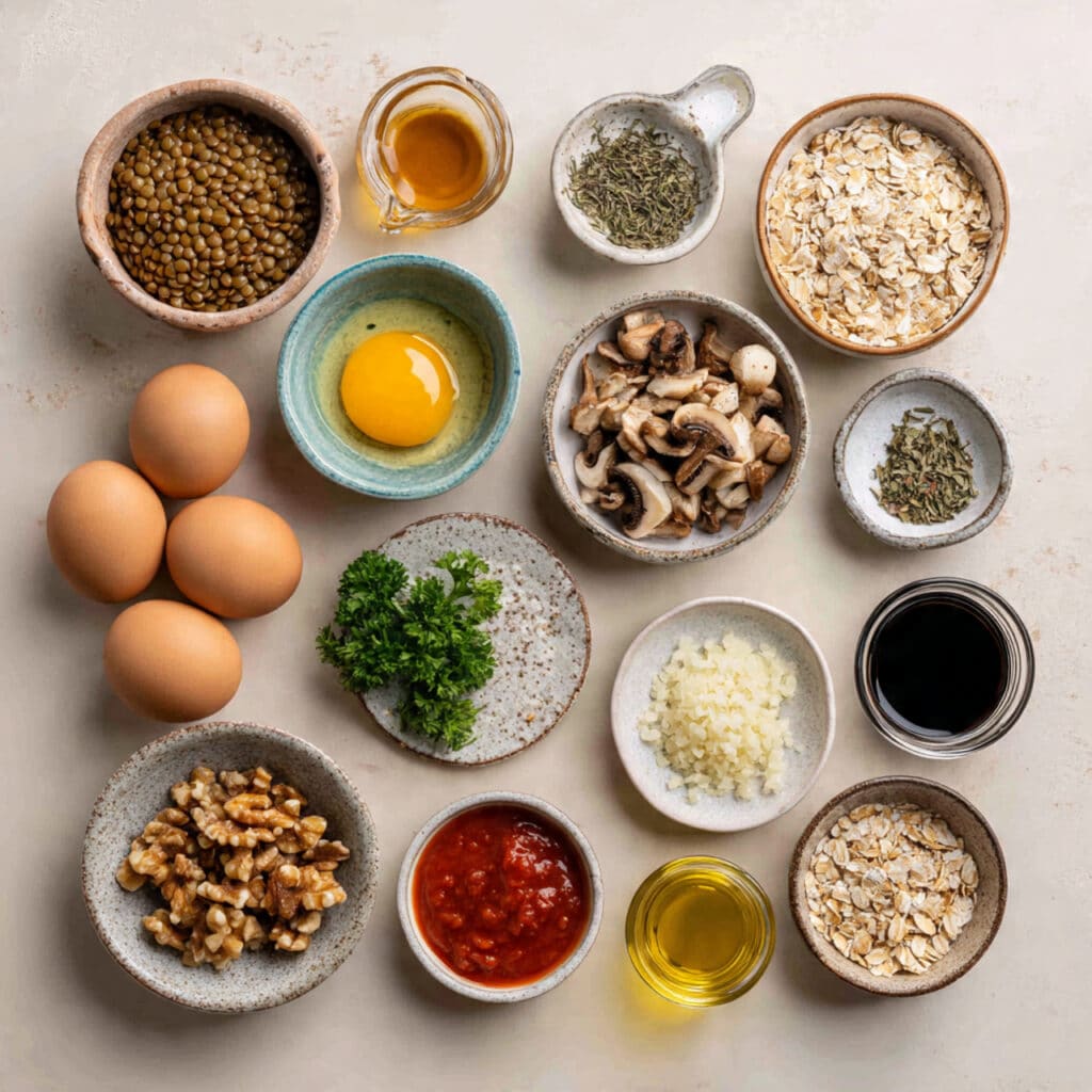 - Cooked brown lentils: 2 cups, these create the hearty base and give the loaf body, protein, and a tender texture.